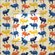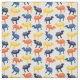 Esse tecido padronizado é perfeito para criar projetos de costura para fãs de camelo. Ele apresenta um padrão completo de ilustrações de camelos bactrianos estilo cartoon ou camelos de dois humildes em azul marinho, azul médio, laranja e amarelo.