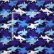 Legal padrão de camuflagem de tubarões criado com silhuetas de tubarão nadando livremente em tons de azul e branco. Divertido por adicionar um toque decorativo do mar a qualquer quarto e excelente para qualquer amante de tubarões!