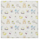 Padrão bonito com itens para bebês: ursinho, pato de borracha, pacificador, frasco de bebê, carrinho...