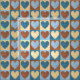 Este é um design de tecido bonito para cortinas, uso doméstico ou vestuário. Apresenta um padrão de corações amarelo pálido, azul claro, marrom-canela e azul escuro em quadrados de cores contrastantes. Perfeito para uma chic country ou homespun, aparência confortável.