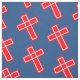 Tecido com um padrão de cruz vermelho, branco e azul. A cruz pode ser girada em qualquer direção e a cor do plano de fundo pode ser alterada clicando no botão personalizar. Parece excelente no tecido da roupa também.