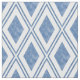 Nosso tecido com padrão azul e branco tem o aspecto manualmente bloqueado dos têxteis tradicionais tintos do índio, em um padrão de diamante vertical geométrico moderno. O padrão azul médio denim tem pequenas variações de tom para um visual autêntico tingido à mão.