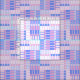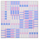 Um padrão abstrato com faixas geométricas em blocos coloridos de azul e rosa.