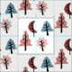 Tecido de Padrão de Feriado Rosa de Pastel da Árvore de Forma de Cookie. Tecido de Natal com árvores simples em biscoitos forma sino, árvore de Natal, estrela e lua. Você pode alterar a cor de fundo - personalizá-la com a ferramenta design. Design de férias bonitinho - tecido de excelente para sua costura de férias e outros projetos do DIY.