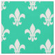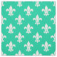 Tecido Padrão de Fleur De Lis, Branco e Verde Caribe