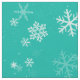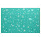 Tecido de Padrão de Floco de Neve Verde e Branco. Lindos flocos de neve brancos em diferentes formas e tamanhos em um fundo verde.
