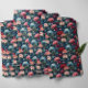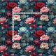 Padrão elegante de flores modernas de lótus com azul escuro e claro, vinho tinto e rosa vermelho-escuro, rosa e branco, e tons verdes claros e escuros de joias em um design de estilo maximalista.
