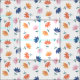 Tecido Padrão de Flores Azuis Laranja Branco