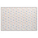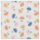 tecido floral divertido em branco com um padrão de flores em azul, amarelo, laranja e rosa claro.