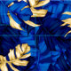 Tecido Padrão de Floresta Tropical Azul e Dourada