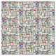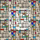 Médio século moderno padrão de grade tecido em múltiplas cores com linhas pretas e quadrados em um padrão colorido. A cor de fundo é um creme leve.