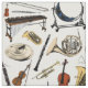 Este design apresenta um padrão aleatório de ilustrações fotográficas de instrumentos musicais usados em orquestras sinfônicas — excelente para músicos e amantes de música.