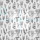 Tecido Padrão de Jardim de Plantas Brancas Negras Elegant