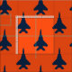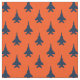 Um padrão de lutador azul-marinho F-15C Eagles silhuettes pop num fundo de laranja rico e fazer este tecido perfeito para o fã do time de futebol de Denver ou para qualquer pessoa que ama jatos laranja, azuis e de caça.
