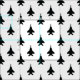 Um padrão de jato de caça preto F-15C da águia silhueta pop num fundo de branco e faz este tecido perfeito para projetos modernos de berçários ou eventos de esquadrão.