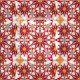 Padrão de mandala de doze pontos em tons de vermelho coral, pêssego, cinza e branco, traçado em preto e acentuado com ouro