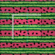 Tecido com um padrão de melancia fofo. Casca verde em camadas de listras junto com uma camada de listras cor-de-rosa com dentro de sementes pretas. Diversão e design de verão.