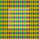 Tecido Mardi Gras com formato de diamantes de harlequin roxo, verde e amarelo
