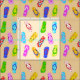 Este tecido apresenta um padrão giro e moderno de sandálias de chinelos coloridas sobre um fundo colorido de areia. Prontos para o seu projeto de casa de praia, DIY!