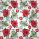 Há amoras ocas adoráveis, poinsetos vermelhos e verdes, e ornamentos em forma de coração com flocos de neve neles.