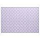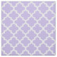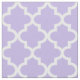 O tecido personalizado apresenta um padrão quatrefoil geométrico marroquino branco com cor de fundo roxo de lavanda clara (pode ser modificado).