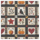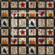 Este tecido apresenta um padrão rústico inspirado em mantas organizado em quadrados e blocos retangulares com motivos quentes de outono. A manta apresenta abóboras, um pássaro preto com peito avermelhado, corações, estrelas vermelhas e ramos florais em tons sujos de vermelho, laranja e marrom. Os sotaques geométricos como a xadrez e texturas cruzadas acrescentam ao toque feito à mão. Com uma estética de fazenda aconchegante em preto, creme e tons de outono, este padrão é perfeito para a decoração do outono, estilo primitivo do país e encanto da época da colheita rústica.