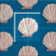 Este design de solha de escalpe original foi criado usando aquarela e tinta. A casca é rosa, roxa e branca com fundo azul oceânico profundo. Este design faz deste o tecido perfeito para qualquer projeto de costura ou de artesanato de praia.