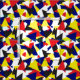 Diversão e tecido colorido com um padrão de bandeiras marítimas triangulares. As bandeiras são as tradicionais cores marítimas do vermelho, amarelo, branco, preto e azul.