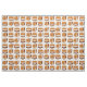 Tecido com um padrão de dois personagens de desenho animados sorridentes diferentes sobre um fundo branco. Um personagem está virado para a frente e um está olhando para o lado.