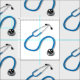 Tecido branco impresso com um padrão de estetoscópios do Doutor.