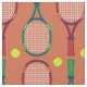 Este é um padrão gráfico colorido de raquetes tênis vermelhas e verdes e bolas tênis de cor clássica em um fundo de terracota, que simboliza um campo de argila. Você pode alterar a cor de fundo clicando no botão "Personalizar!". Aqui você também pode mudar o tamanho do azulejo para ajustar o tamanho de um desenho necessário.