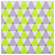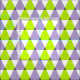 Padrão geométrico de tendências com triângulos roxos, verdes limões e brancos.