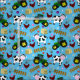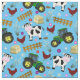 Na fazenda com vacas, tratores, feno, cozinheiros, etc.