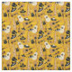 Diversão do padrão de banda Mariachi sobre fundo amarelo ouro. O padrão apresenta guitarras, violinos, harpas, trompetes e sombreros.