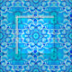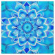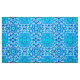 Tecido em um padrão floral batik mandala em tons de azul-claro-suave a cobalto profundo, acentuado com branco