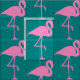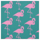 Um padrão de flamingos cor-de-rosa está no tecido. O pássaro está parado em uma perna.