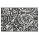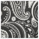 O padrão de paisley floral branco em um fundo preto.