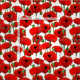 Um belo e brilhante padrão de papoilas desenhadas à mão em seus caules arranjados em um padrão de papoilas em um campo. Esse padrão ousado permanece fiel às cores vermelhas brilhantes da flor da papoila. Este é um lindo padrão floral para os meses de outono!