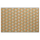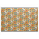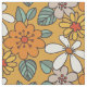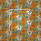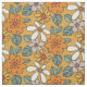 Este tecido retrô dos anos 60 e 70 apresenta um padrão floral simples em tons de laranja, ouro, branco e verde.