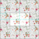 Tecido Padrão Floral Verde-Coral Rosa