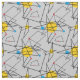 Ângulos e círculos lineares pretos nas cores primárias do vermelho, amarelo e azul constituem este padrão retrorreflector contemporâneo que lembra o Meio século moderno design de e a Era Atômica das décadas de 1950 e 1960. A cor de fundo pode ser facilmente personalizada.