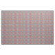 Este tecido colorido apresenta um padrão geométrico em vermelho, azul, cinza clara e preto.