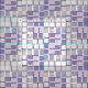 Um padrão abstrato com retângulos e quadrados em blocos coloridos de roxo e latte.