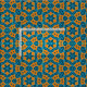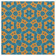 Padrão geométrico decorativo sem costura, com formas geométricas em tons azuis sobre fundo amarelo.