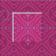 Padrão geométrico decorativo sem costura, com formas geométricas em preto sobre fundo rosa quente.