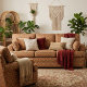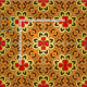Padrão geométrico decorativo sem costura, com formas geométricas em laranja, vermelho, amarelo e preto.