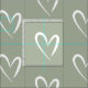 Design moderno e na moda com um design de padrão de corações brancos colocado sobre um fundo verde-cinza. Perfeito para projetos de artesanato, moda, decoração doméstica, como cobrir de edredão e travesseiros, cortinas e muito mais. Design por Inge Lewis. Localize mais itens correspondentes na loja ingeinc.com.