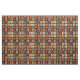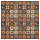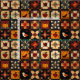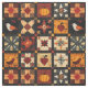 Este tecido apresenta um padrão rústico de colcha de retalhos organizado em uma aconchegante grade de blocos de tecido. Cada bloco destaca os únicos motivos autônomos, como abóboras, pássaros, maçãs e corações, ao lado de intrincados padrões geométricos, incluindo estrelas, quadrados e designs florais ou inspirados em flocos de neve. Renderizado em tons úmidos de laranja, vermelho, marrom e creme contra fundo escuro profundo, a colcha captura a essência do outono e da época de colheita. Com fronteiras contrastantes entre os blocos, este design de arte folk estilo fazendeiro é perfeito para a decoração de Ação de Graças, artesanatos rústicos, projetos DIY inspirados no tecido e designs de outono estilo country.