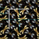 Padrão sem costura com ouro, joias, libélulas brilhantes com asas brilhantes e detalhadas sobre fundo preto. Dourada libélula.