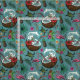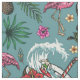 Placas gráficas tropicais de surf retrorado multicolores sobre fundo teal, padrão de repetição ininterrupta